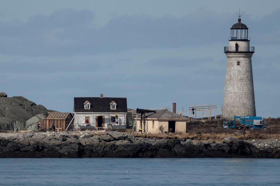 At Cape Fochu, a 60-foot-tall lighthouse was built for the film The Lighthouse, along with several buildings. William Dafore and Robert Patterson were here for filming. The set was taken down and there is now not even a piece of wood left on the site. This picture was taken by Ervin Olsen during the build of the movie set.