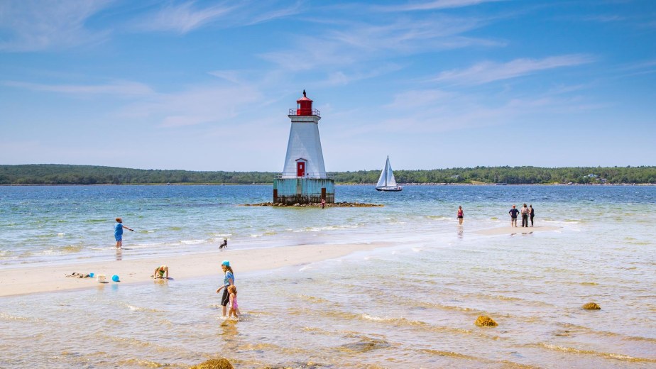 The Sandy Point Lighthouse – one of Shelburne’s most popular destinations. Located on a sand bar at the entrance of Shelburne Harbour, the lighthouse offers photo opportunities at any time of day; however, at low tide, you can enjoy the sandy beach which allows you to walk out to the lighthouse.